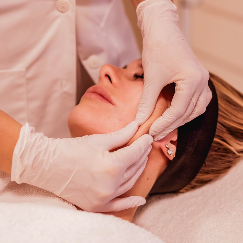 - Oppervlaktereiniging We starten met een zachte reiniging om make-up, talg en vuil van de huid te verwijderen.